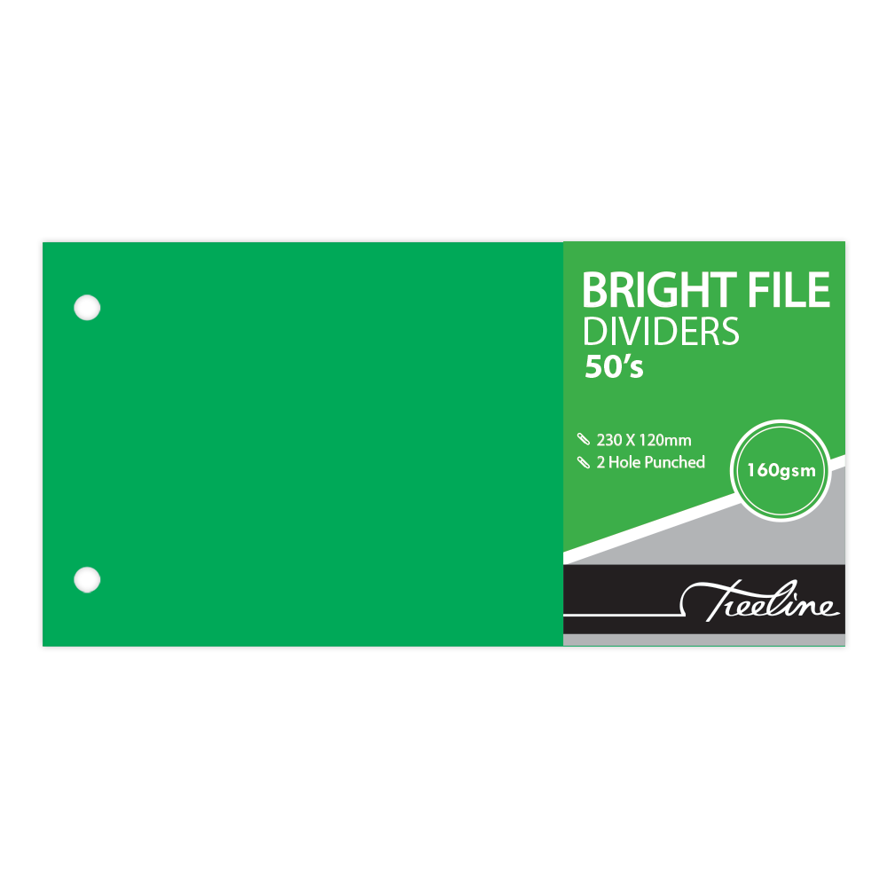 Bright File Dividers Green Colour 160gm Board 230x120mm – 2 hole Punchded Pack of 50’s